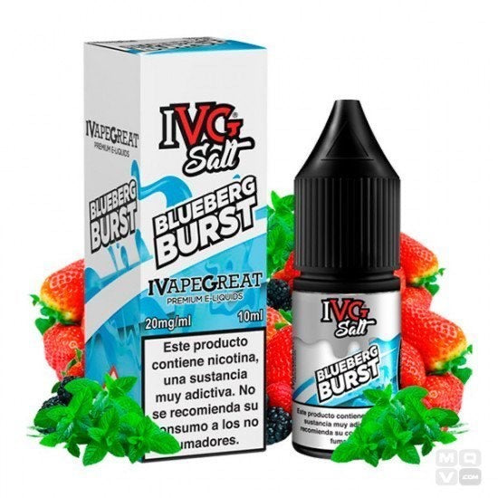 IVG Blueberg Burst e-liquid delivers a full on sweet berry blend with an icy cooling finish. A sweet burst of fresh juicy blueberries is met by a cooling icy exhale.