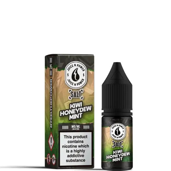 Kiwi Honeydew nic salts by Juice N Power 10ml. These nicotine salts contain a heavenly fusion of honeydew melon ripe kiwis, a handful of berries and refreshing mint. A combination sure to tantalise your taste buds.